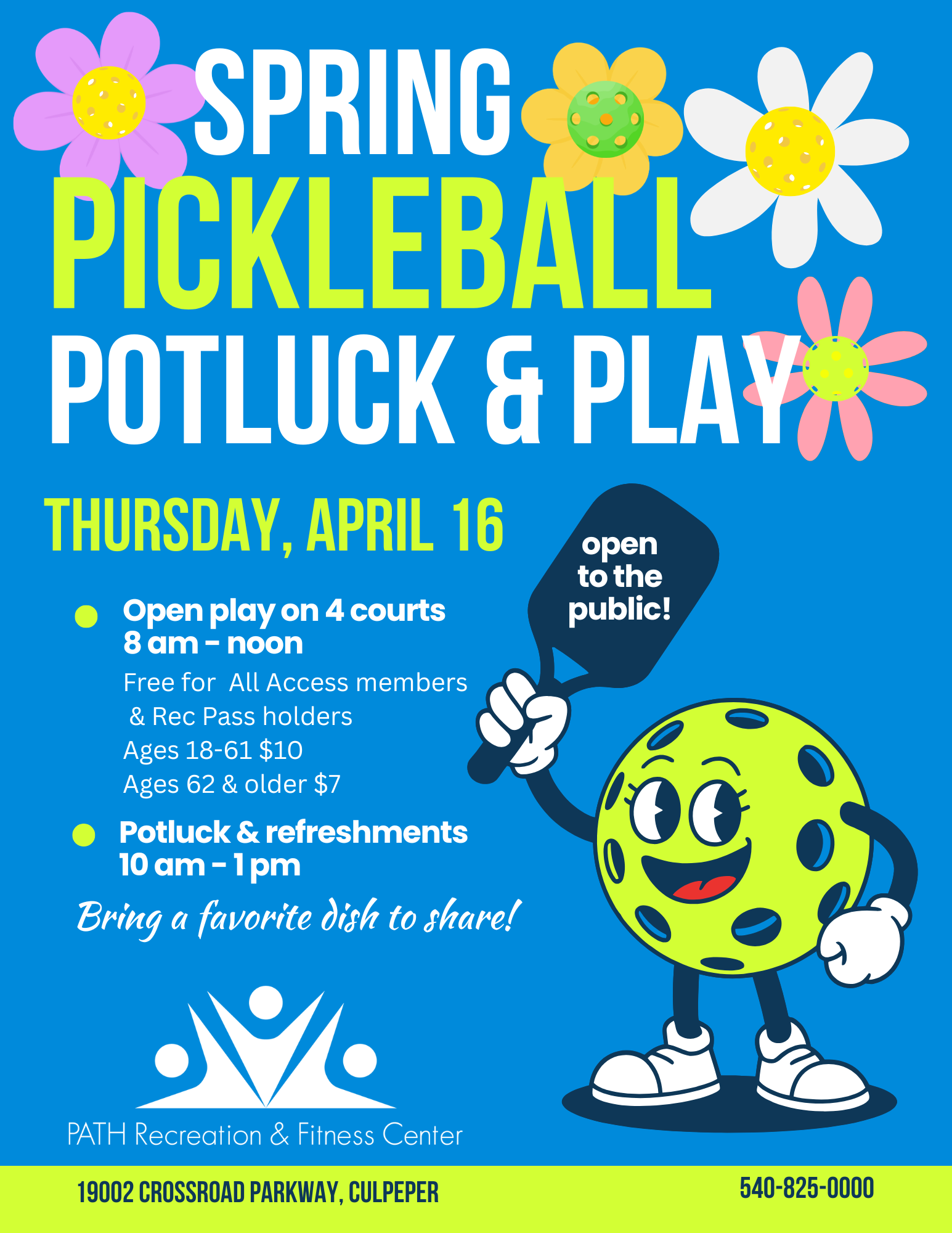 Celebrate spring with pickleball play & a party on Thursday, April 16! All welcome!