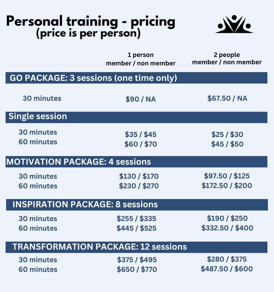 - personal training information & fees